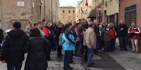 En la foto: un grup de turistes a l’Alguer vella